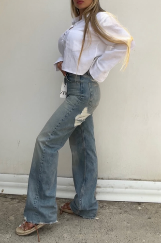 ناموجودشلوار زنانه زارا جین واید لگ آبی روشن